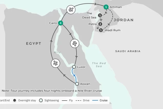 mineral-rich waters of the Dead Sea, explore the ruins of Amman,
