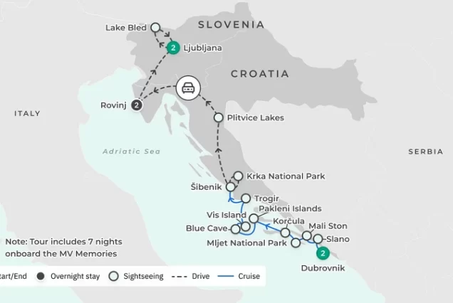 Sail the glittering Adriatic on an intimate premium journey combining a privately guided land tour with a boutique coastal cruise aboard MV Memories. With just 19 cabins and attentive onboard service, this elevated experience blends slow sailing, cultural discovery and personalised exploration across Croatia and Slovenia.